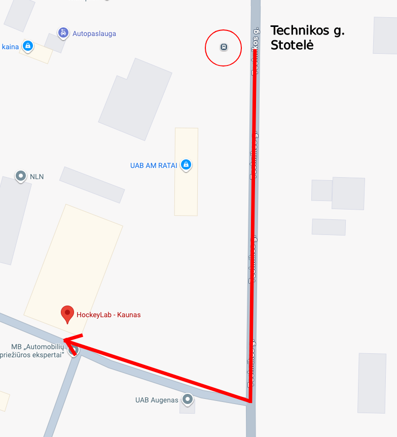 Automobiliu patogiausia mus rasti naudojantis „Google Maps“. Tiesiog įveskite mūsų pavadinimą HockeyLab – Kaunas į paiešką, ir sistema parodys greičiausią maršrutą iki mūsų vietos.